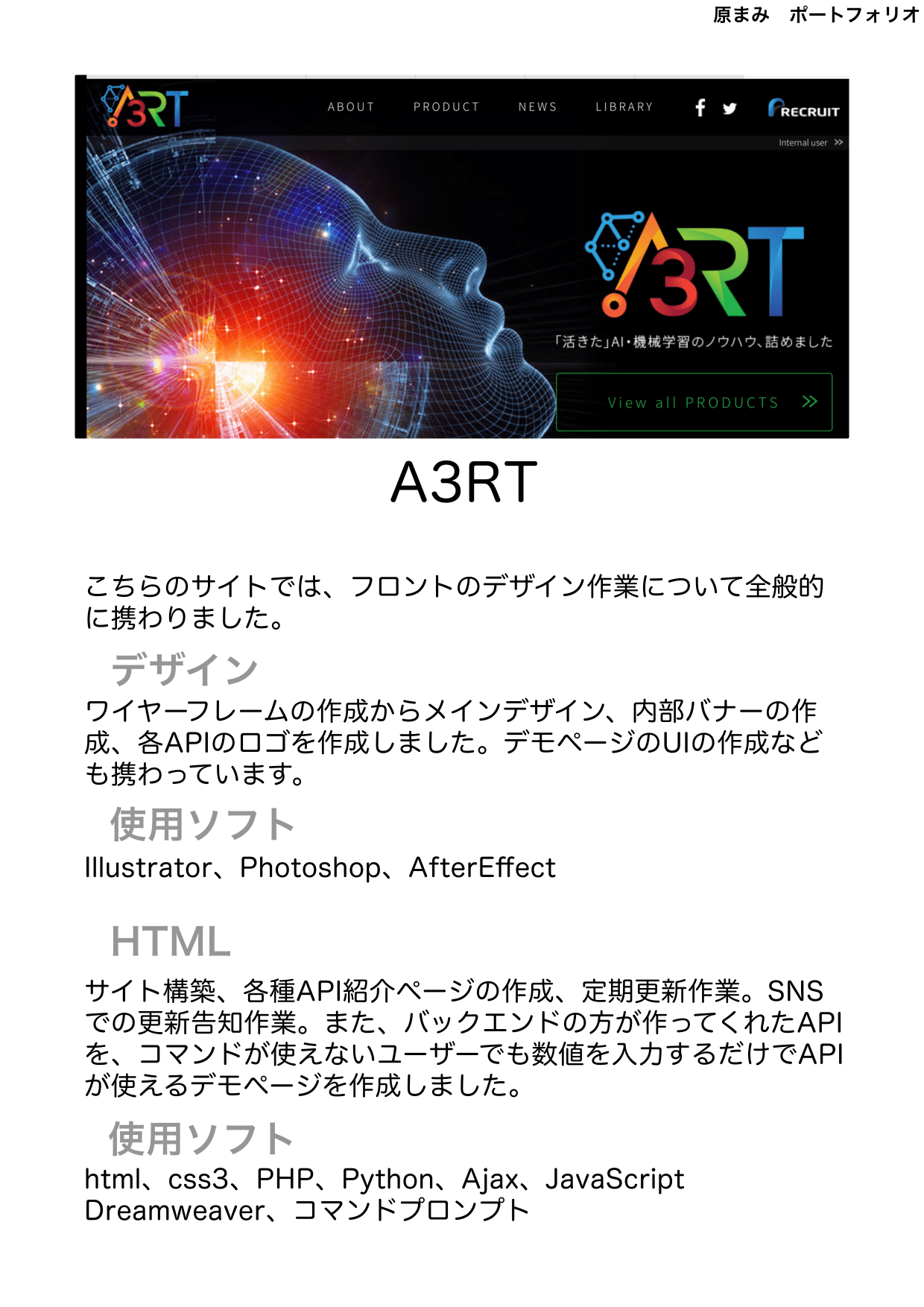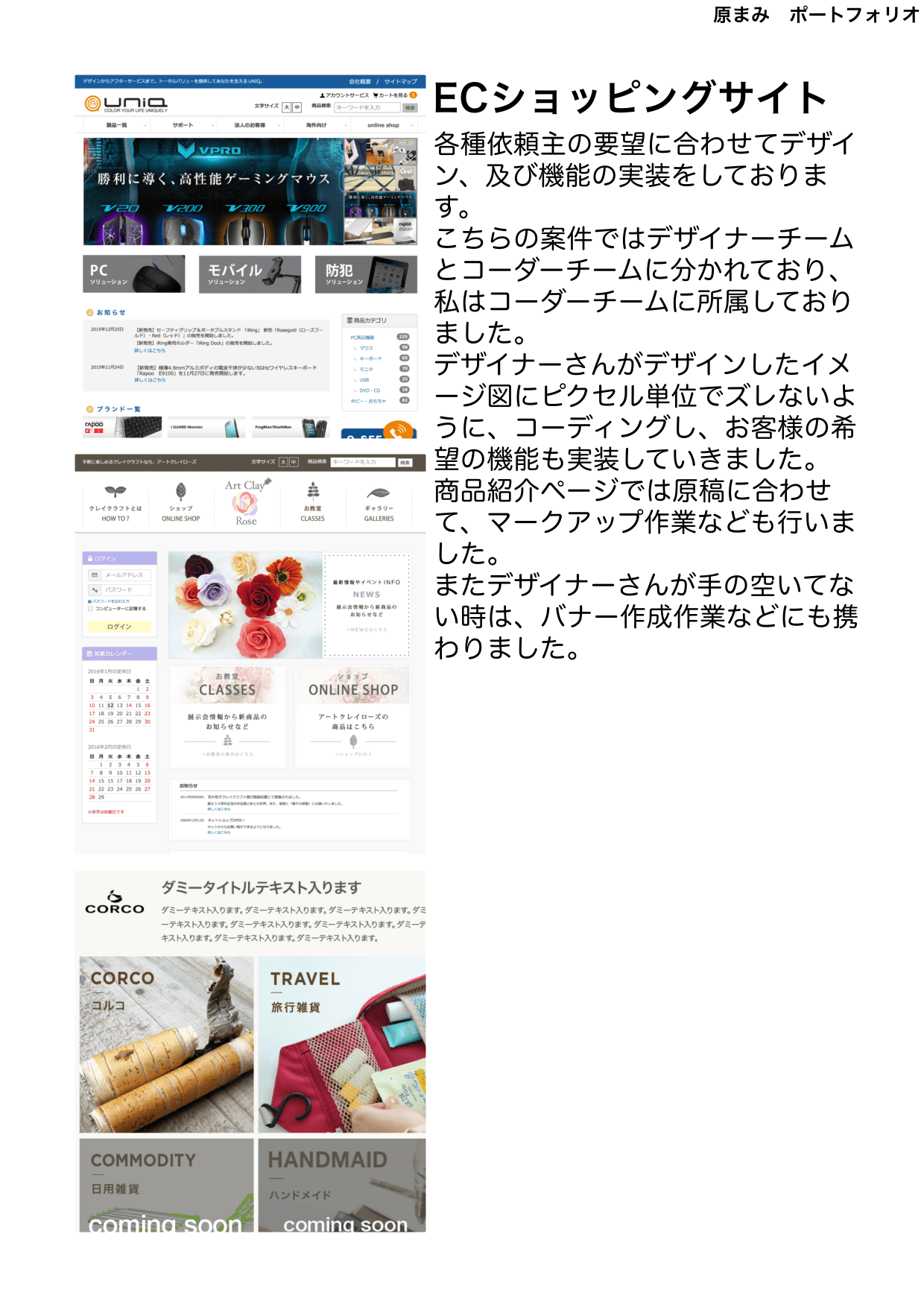 コーディング / 使用ソフト HTML5、CSS3、SCSS、JavaScript、jQuery、PHP、React、TypeScript